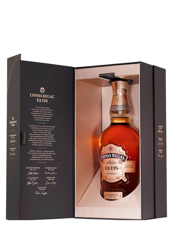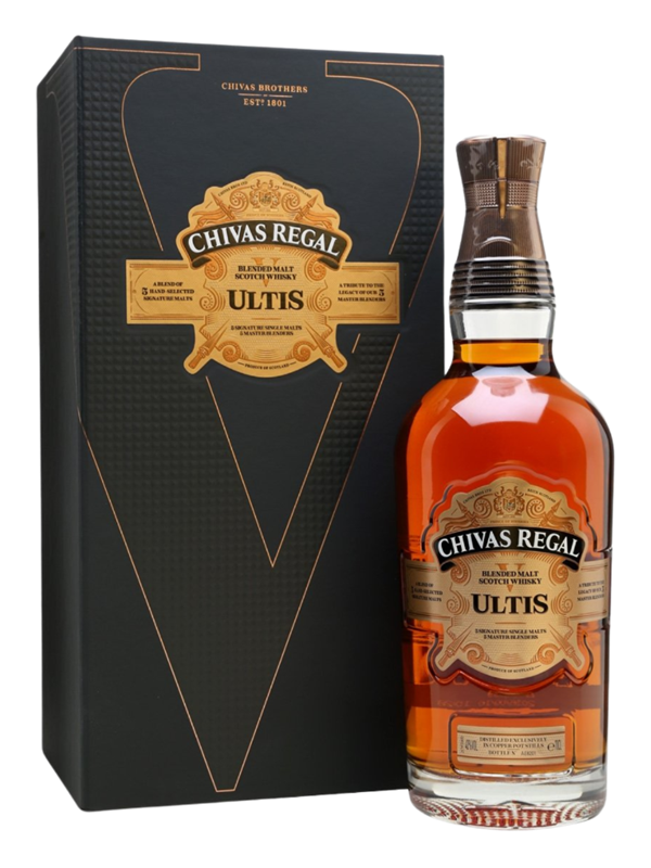 Chivas Ultis: Tuyệt tác Blended Malt Scotch từ 5 dòng Single Malt quý hiếm. Hương vị mật ong, vani và gia vị mềm, đỉnh cao của sự cân bằng và tinh tế.