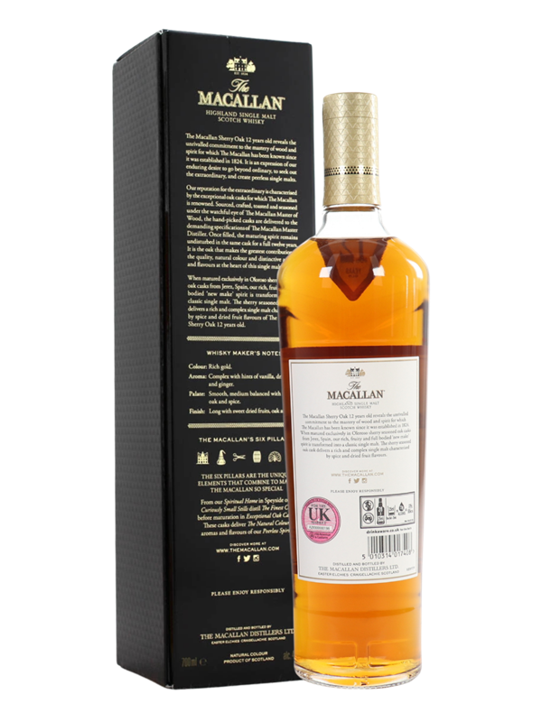 Macallan 12 Sherry Oak là một phần của dòng Sherry Oak Cask – nơi tinh hoa truyền thống được giữ vững. Không như các dòng Double Cask hay Triple Cask, Macallan 12 Sherry Oak chỉ được ủ duy nhất trong thùng gỗ sồi châu Âu từng chứa rượu sherry oloroso. Điều này tạo nên chiều sâu, cấu trúc và sự phong phú đặc trưng cho rượu. Đây là một tác phẩm nghệ thuật định cao về hương vị và chất lượng. Từ quá trình sản xuất kỳ càng đến hương vị phong phú, chai rượu này xứng đáng là một bảo vật trong bộ sưu tập.